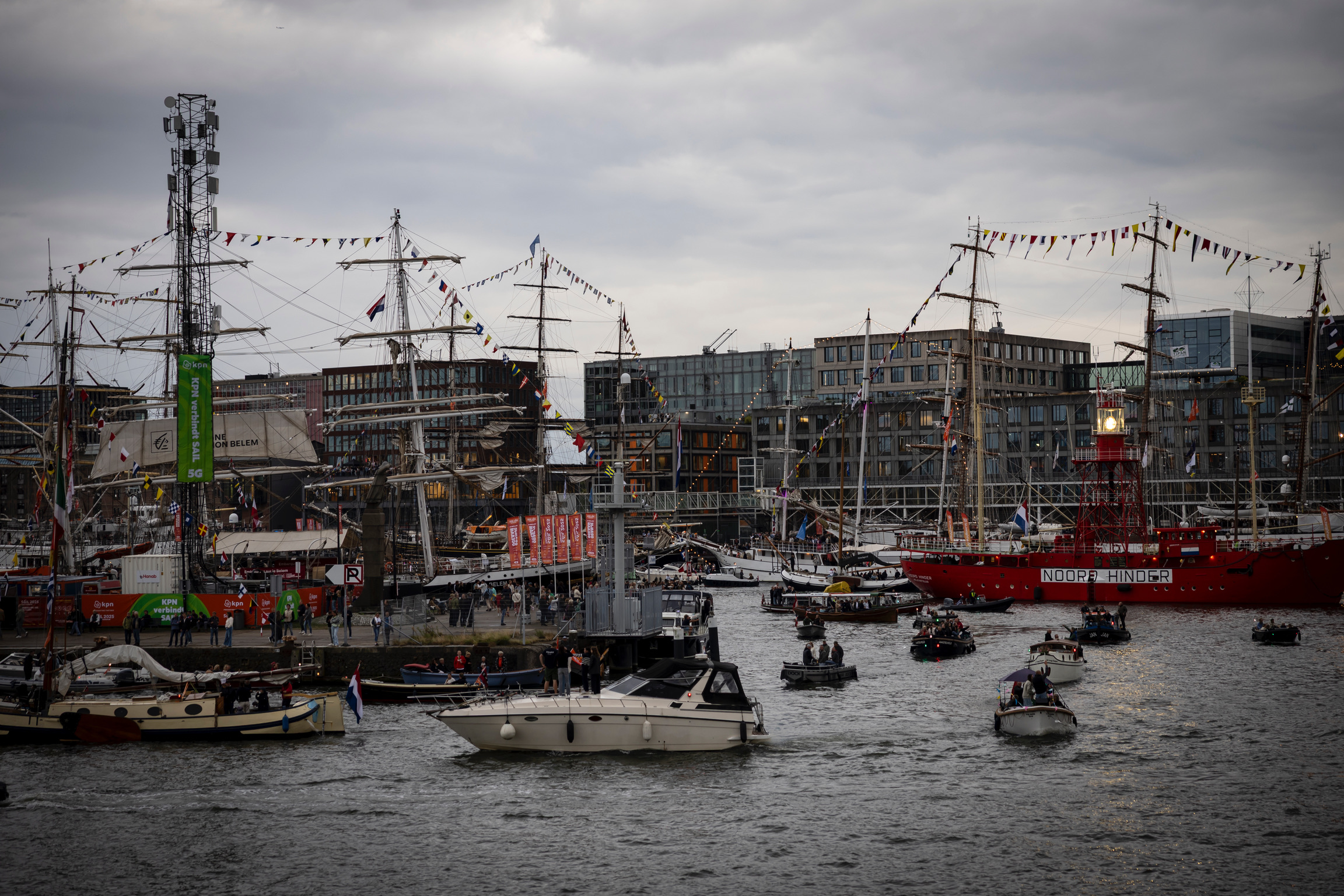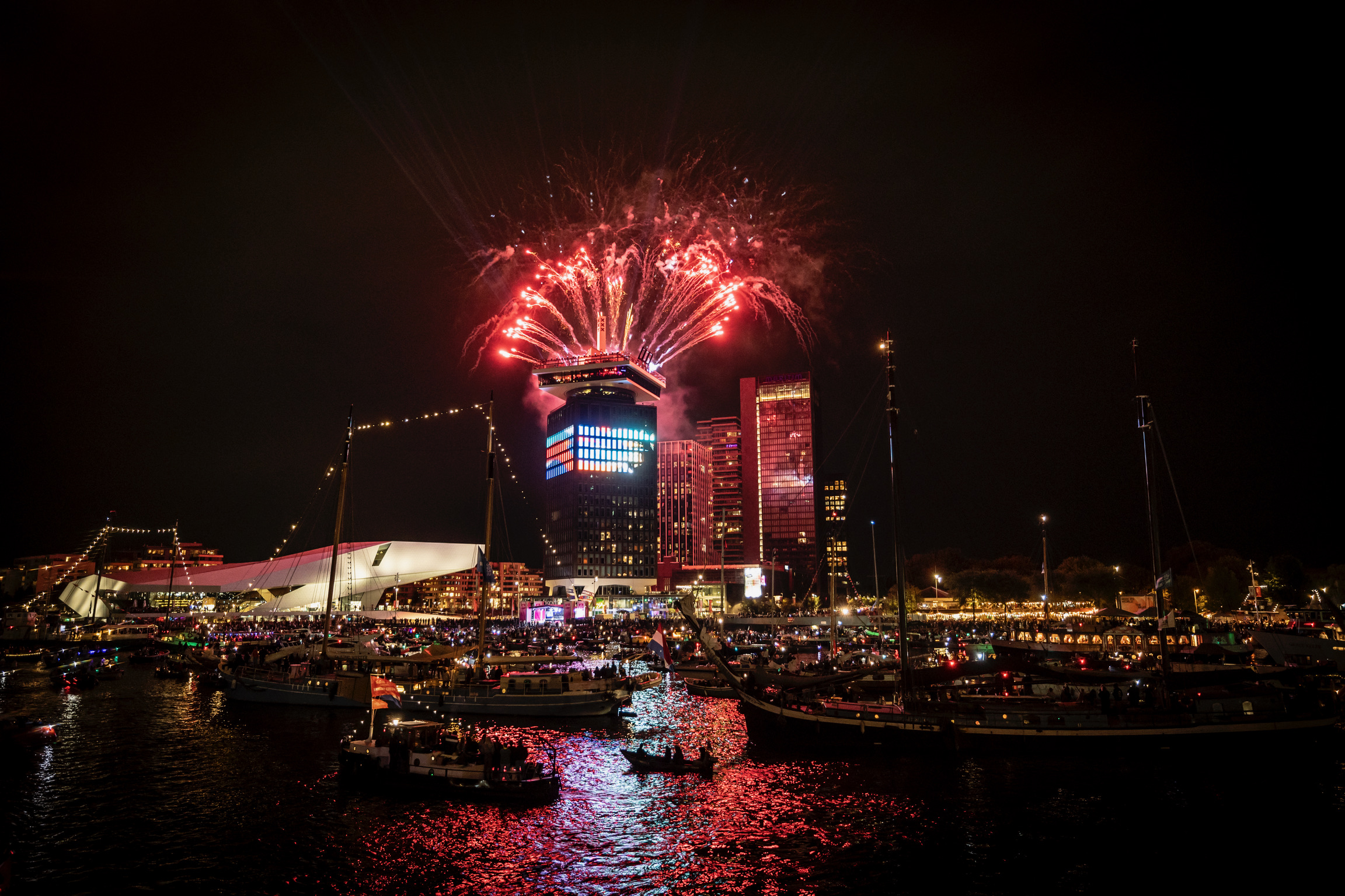 Met 350 gasten werd het jubileum groots gevierd op een vloot van schepen, midden tussen de indrukwekkende tall ships in de haven van Amsterdam. Terwijl de zon langzaam onderging, voeren de gasten langs het levendige decor van zeilen, muziek en licht.